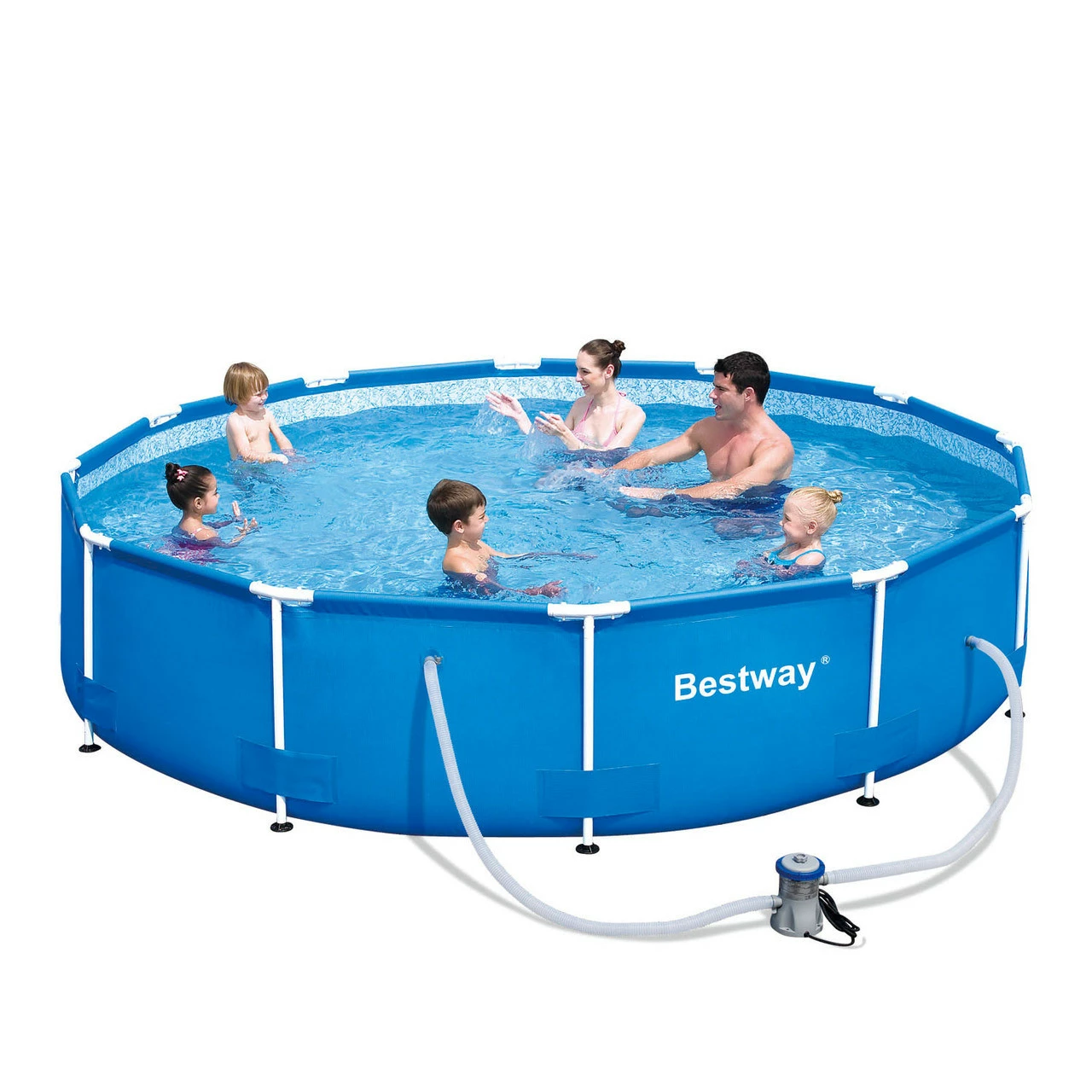 An affordable and robust above ground swimming pool which is also quick and easy to set up, the 12ft Steel Pro Metal Frame Garden Pool Set is an ideal family swimming pool perfect for Summer parties, keeping cool on hot days, luxurious relaxation and for fun with friends and family!