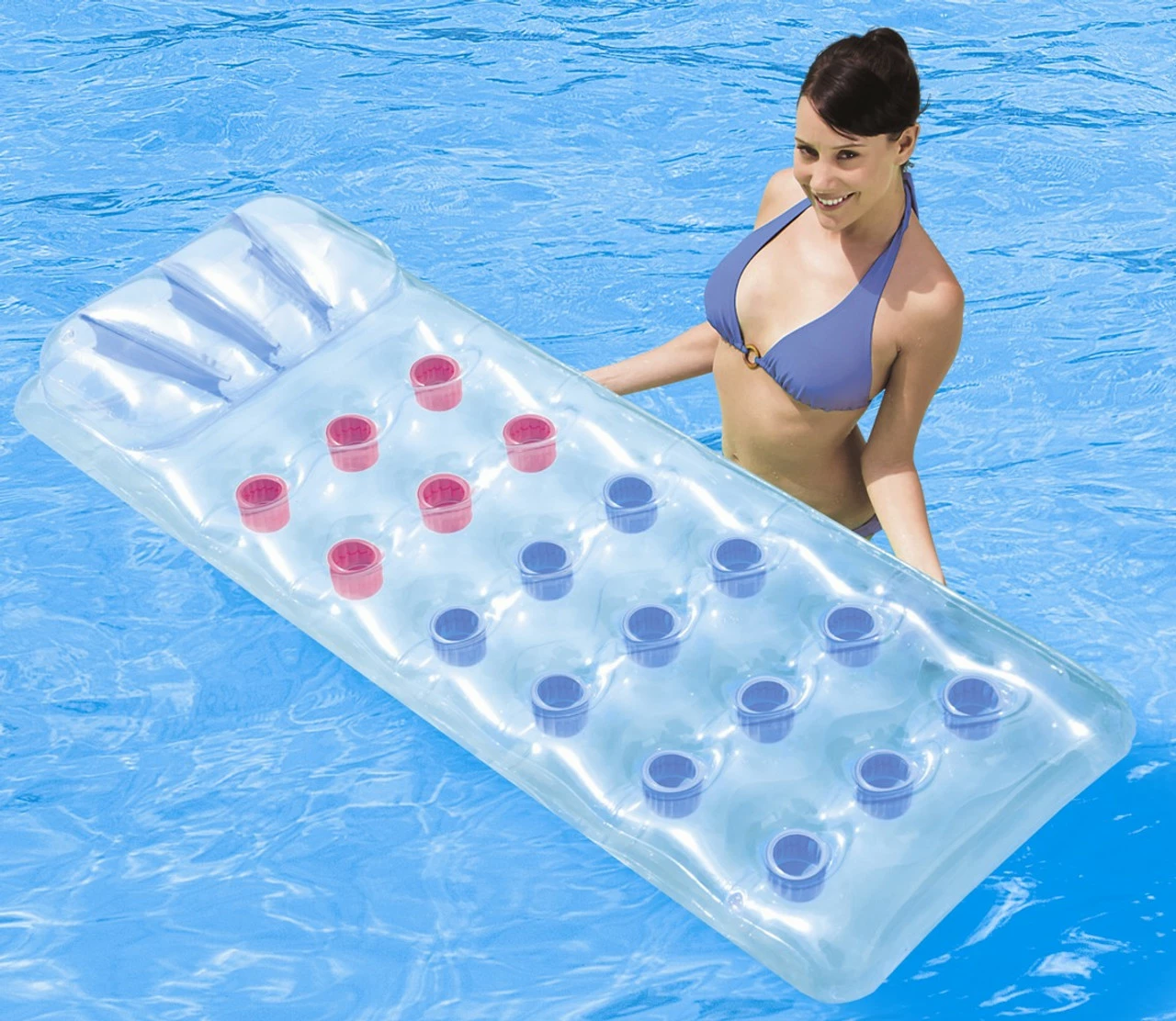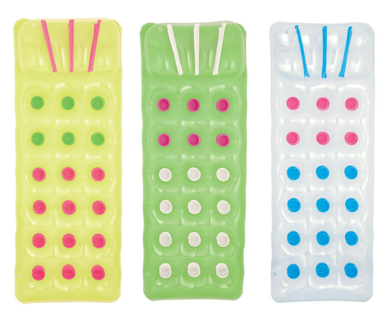 18 Pocket swimming pool lounger available in green, pearl and yellow, bright coloured pool lilo. Size 188 x 71cm