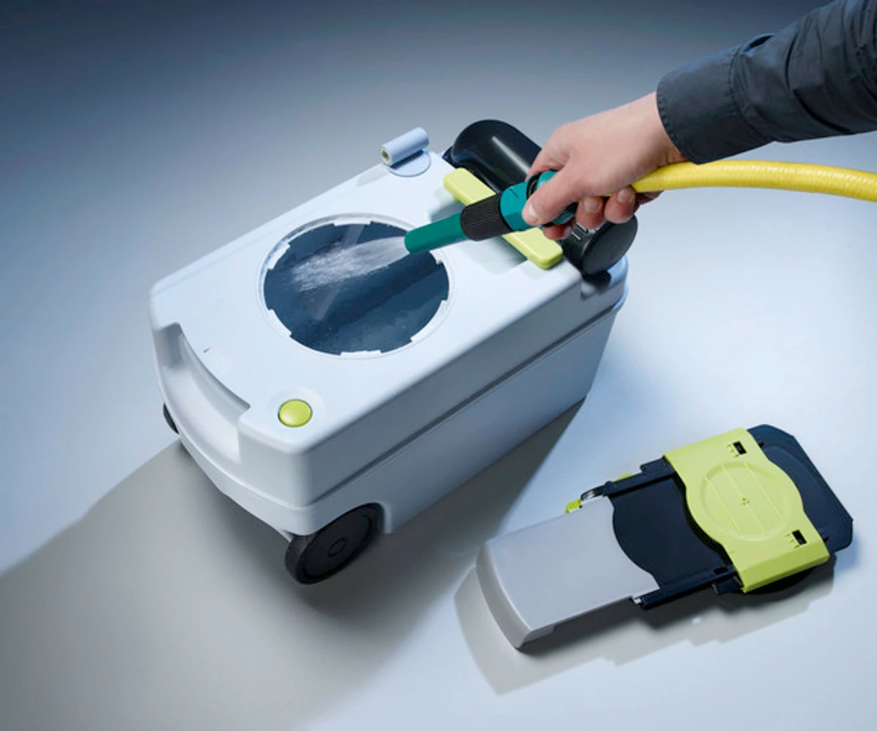 Featuring a wheeled caddy tank with a solid double-strut telescopic handle making it easy to transport and empty due to its handy tank level indicator (including a visual warning signal for when the tank has been removed) for complete ease of use and maintenance of your motorhome.