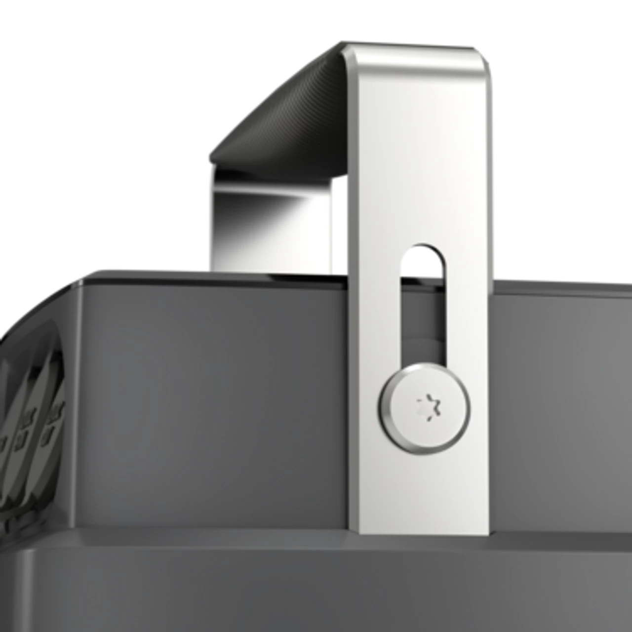 - Lightweight, ergonomically designed stainless steel carry-handle
