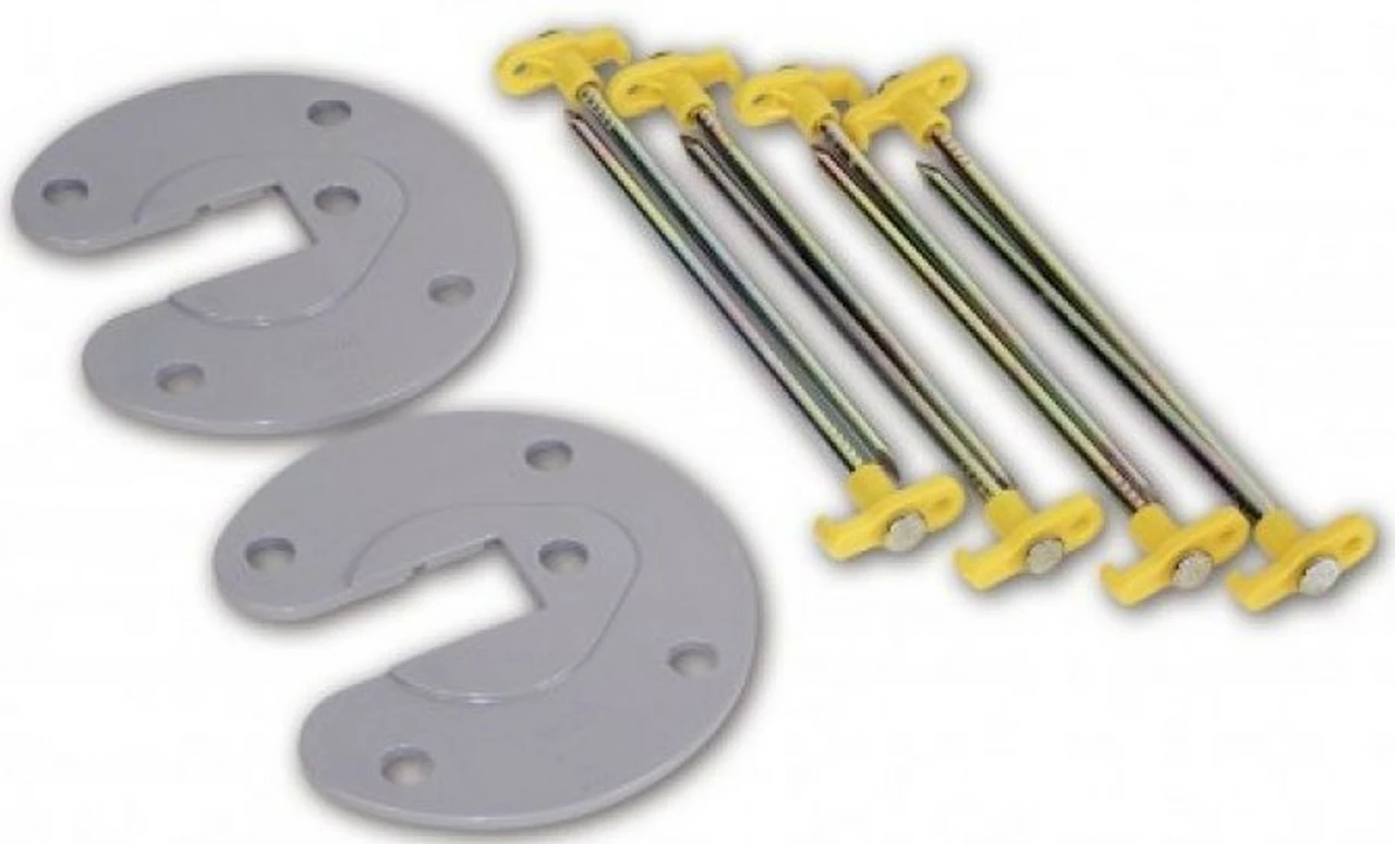 The plate kit is for fixing the front legs of your awning to the ground, which increases resistance to winds and adverse weather conditions. The plate kit made from strong plastic, with Steel pegs. It will fit all Fiamma and Omnistor legs.