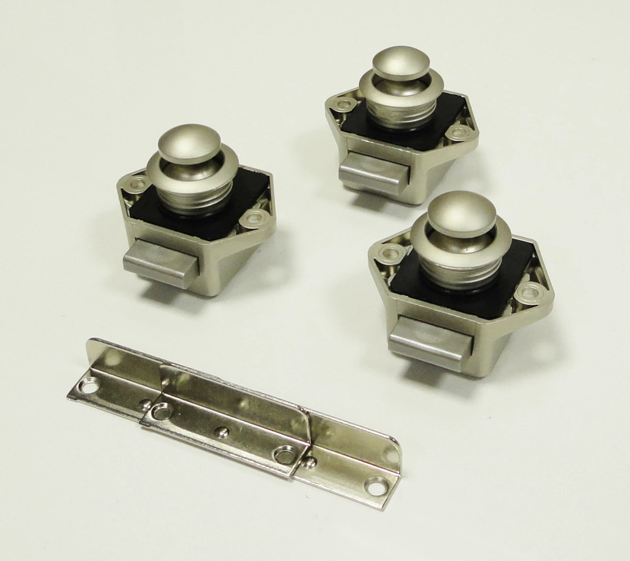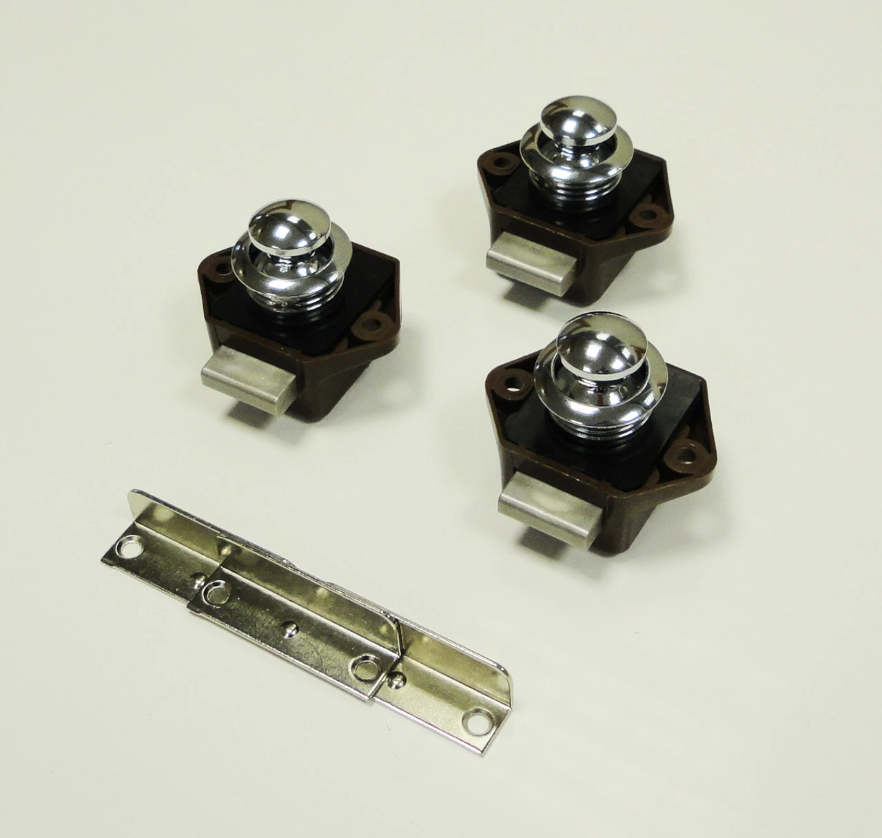 Please note: This item is sent out as a pack of 3 push button door handles & catches (of a single type). Please use the drop down menu at the top of the page to confirm your preference of push button type prior to checkout.