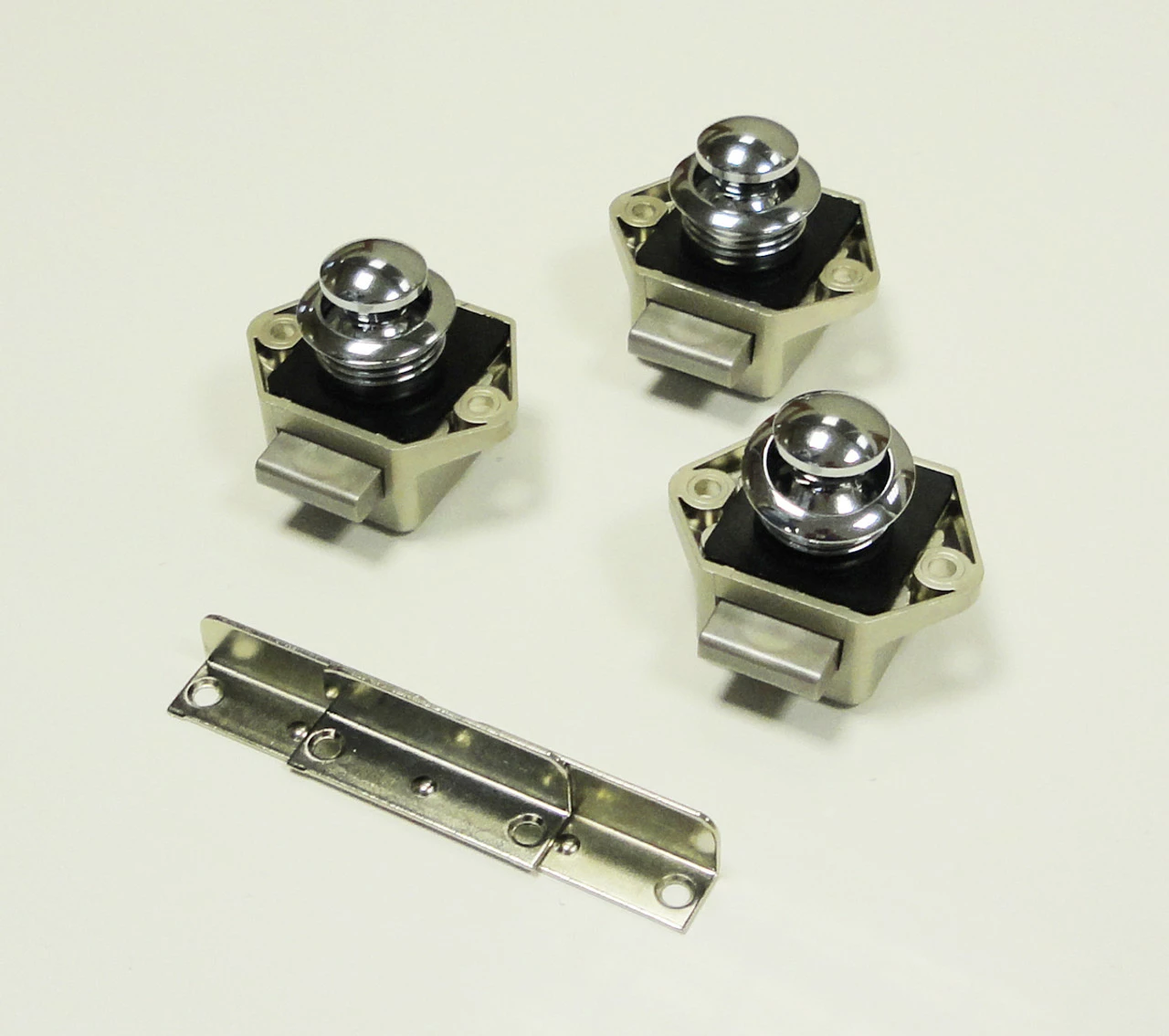 Mini Push Button Door Handle & Catch (Pack of 3)