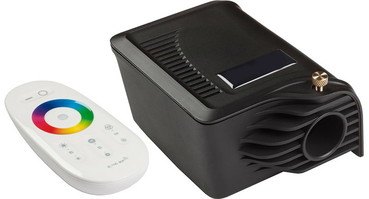 This star ceiling kit has an LED light source (light box) and provides an RGBW sequence (red green blue white), it can be manually set on the light box to stay at a fixed colour or go through a set colour change sequence. Remember you will need access to the box if you want to change the setting, if it’s in your loft you’ll have to get up to change it.