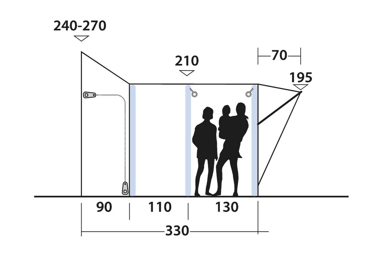 The optional Newburg 240 Inner Tent allows this awning to sleep two, whilst still providing extra space and without blocking access to the main doors or your vehicle. This makes it a great choice for growing families.Â